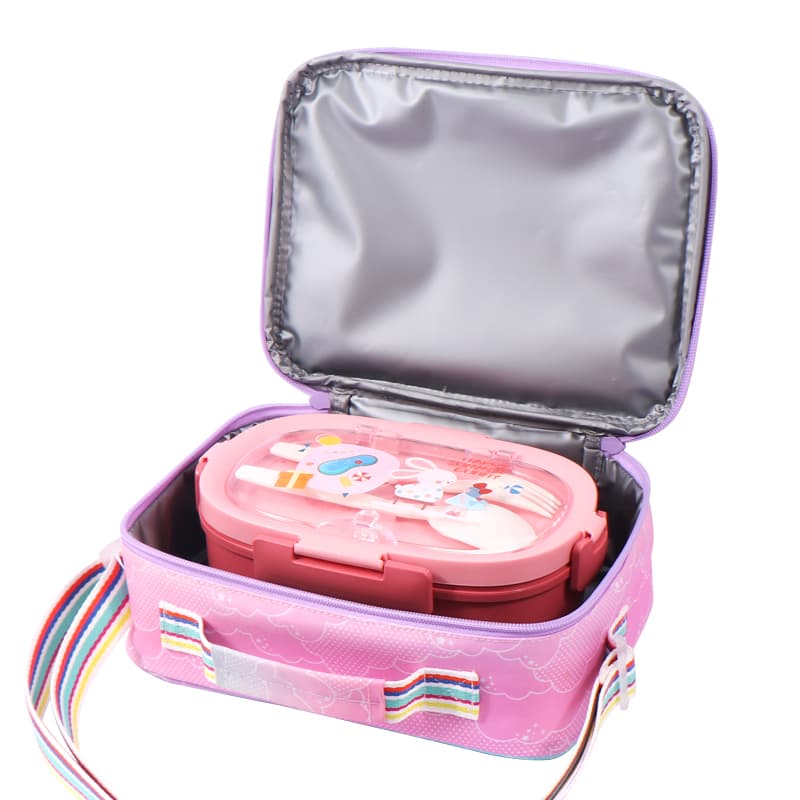 FoskaFoska Pink Bright PVC Large Capacity Animals Cartoon Kids Lunch Box